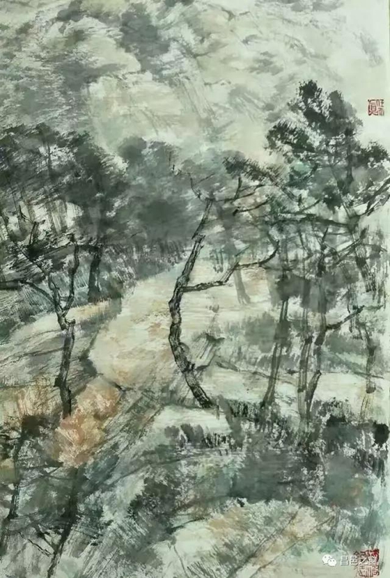 我常常选取如水库一寓,村头一角,或山道弯弯、溪水潺湲、疏林野径等等,这些简单、朴素而且随处可见的普通景象作为创作题材,这些寻常景像似乎更加纯朴、亲切和丰富。