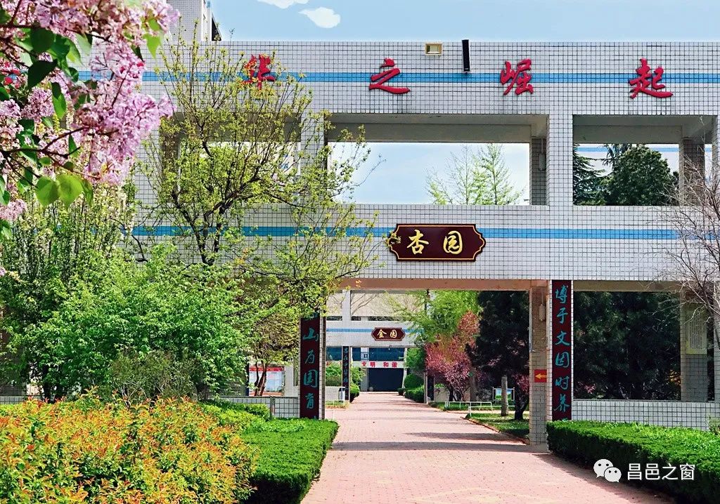从门楣下穿过,就是杏园了。高高的两颗杏树,早已“花褪残红青杏小”。建校之初,两颗杏树就被挪移过来,历经20年的风风雨雨和冬去春来,依然枝繁叶茂,生机勃勃。