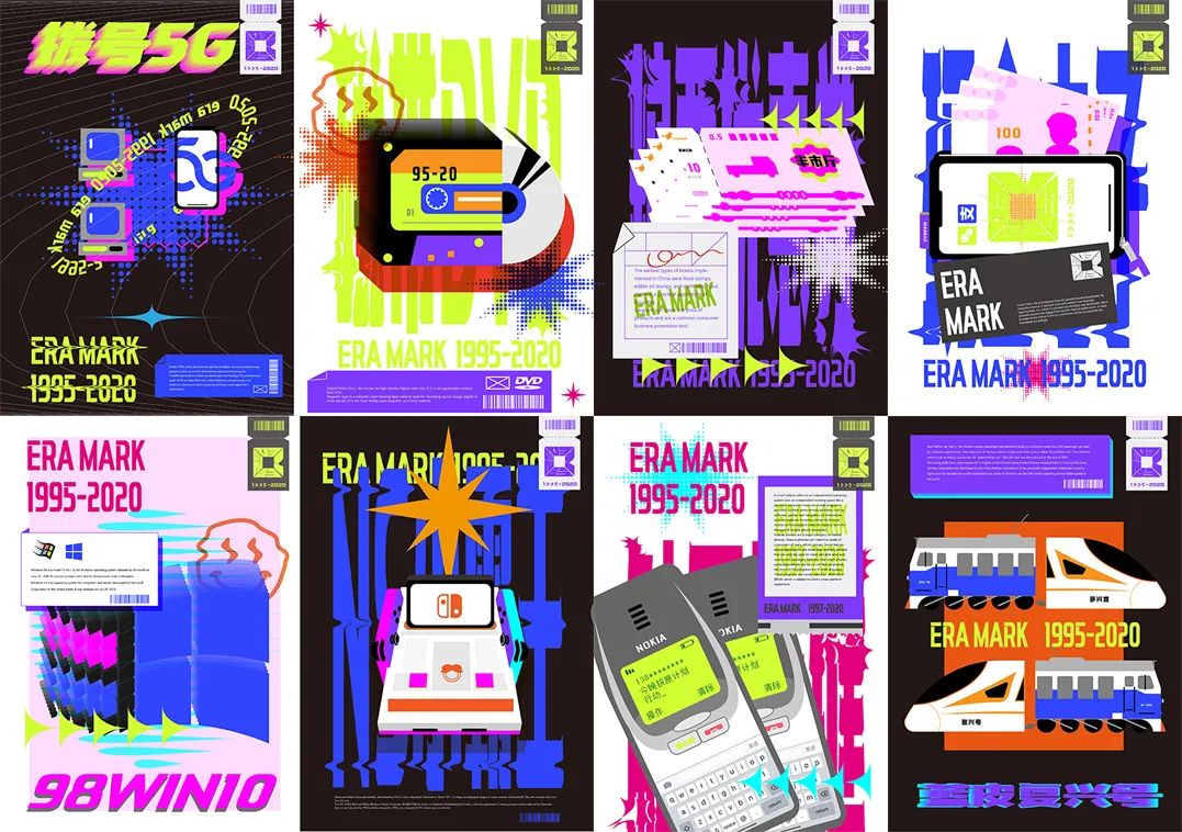 这是一个属于我们95后的品牌设计,传达95后的观感理念。对于我们95后出生于一个高速发展时代的中国,生活社会发展变化的一个诠释。将我们出生年代所用之物,与现在科技社会产物相结合,进行设计。