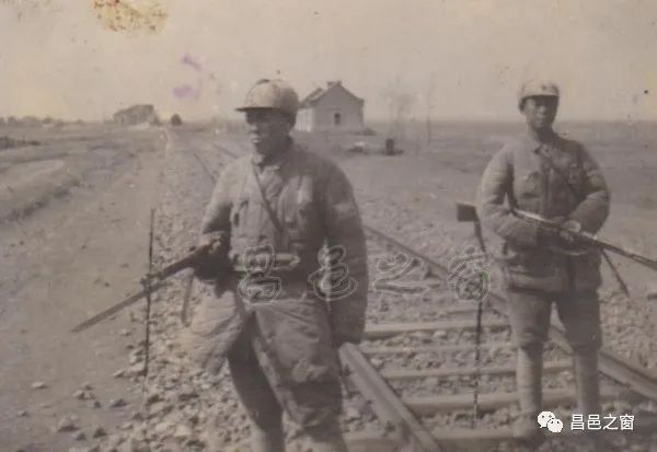 解放军25师74团保卫丈岭站。(拍摄于1947年11月)