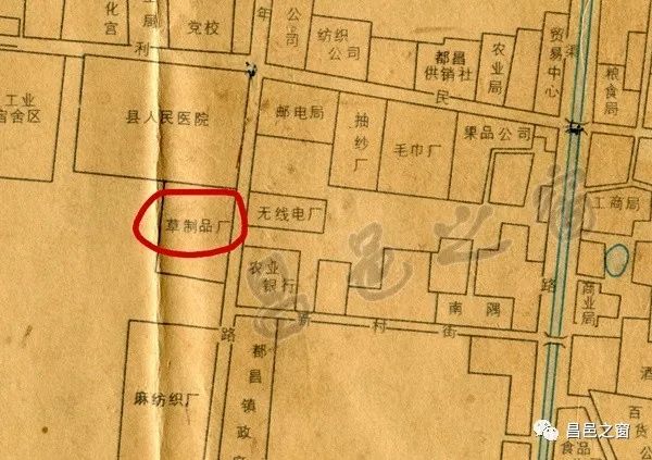 二十世纪八十年代城区图中草制品厂位置