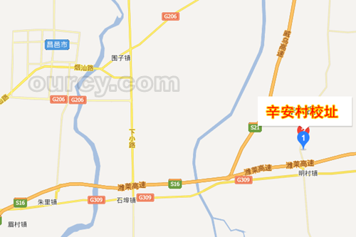 潍北张家院(今寒亭区寒亭街道张家院村)。任辉山任首任校长,教职工34人,收初中7个班,386名学生。此后,学校历经七次迁址,七次易名,最终定名山东昌邑第一中学至今。