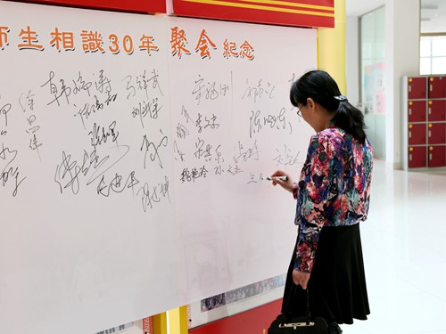 光阴荏苒三十载,再聚悦从心底来。当年数十青涩相,两鬓已赛恩师白。