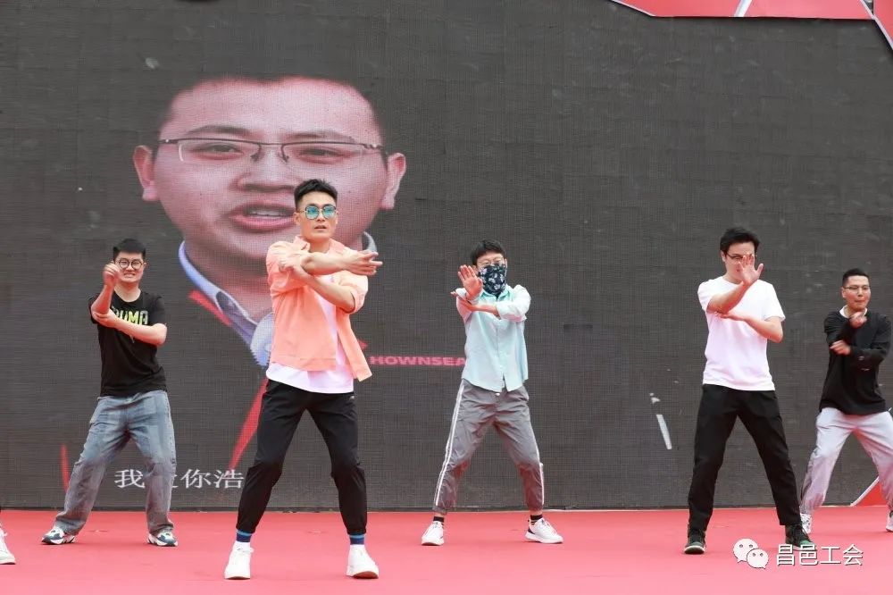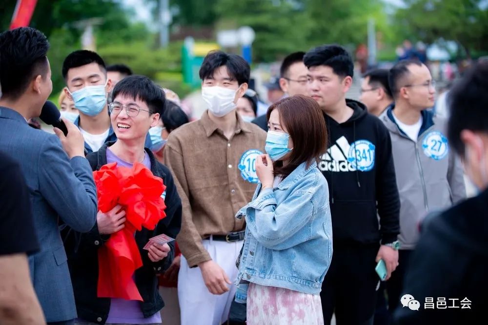 女职工站立不动 男职工顺时针慢转