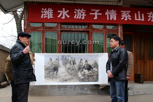 出生于三合村的七旬老人、著名画家孙绪民老先生也一早赶回了村子和我们见面。孙老握着我们的手说:“我只知道我老家是昌邑,好像是离岞山站不远,但不知道那个庄的。”他给我们展示了他创作的系列移民题材作品《闯关中》,并说:“祖辈跋涉几千里来陕创业不容易,我就是要用作画留住那段不能被遗忘的历史。”