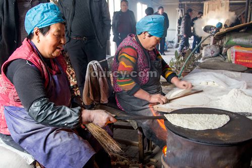 正在烙大饼的大婶们。没等我开口说她昌邑话说得好,她倒是先表扬起了我家乡话地道。