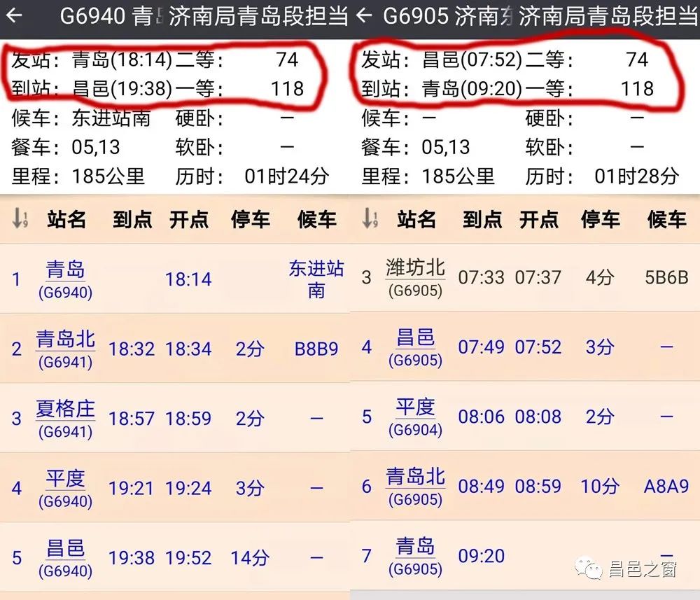 首页 新闻动态 坐上高铁去青岛!昌邑直达青岛高铁开通! 坐上高铁去青岛!昌邑直达青岛高铁开通! 昌邑之窗 发布于 2021年7月19日 评论(0) 阅读(1902) 7月11日,G6905次高铁开通。该次列车从济南东至青岛,沿潍莱高铁经昌邑、平度、青岛北至青岛站,昌邑停站。从昌邑至青岛北站57分钟,至青岛站1小时28分钟。7:37昌邑站发车。 回程车次G6940,18:14从青岛站发车。