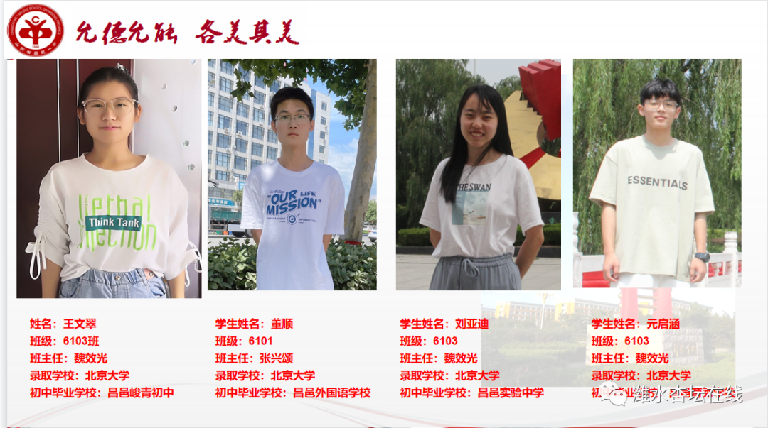 适逢昌邑一中建校75周年,学校收到了一份来自北大的特别贺礼,该校同学四人同时收到了北大的录取通知。