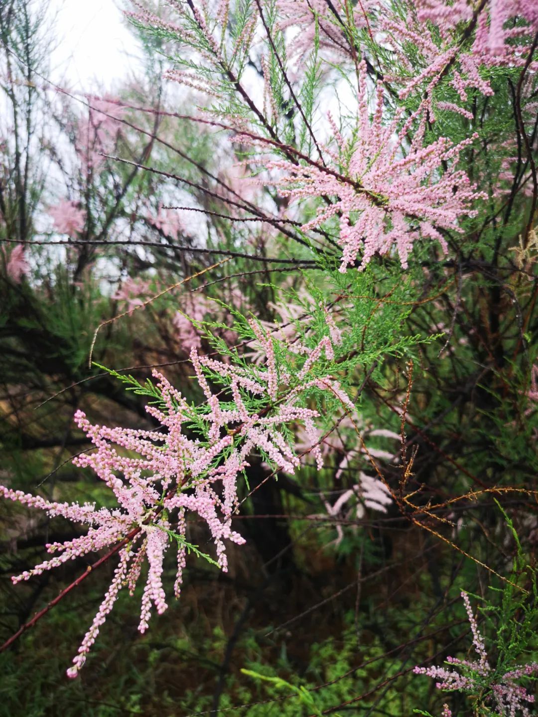 柽柳花开,美妙如画。老花谢了,新花又开,花开花落,春夏秋三季绵延不绝。繁茂多姿的柽柳花海,有一种神秘的力量,连天接地,连海接陆,护佑人们美好的生活。
