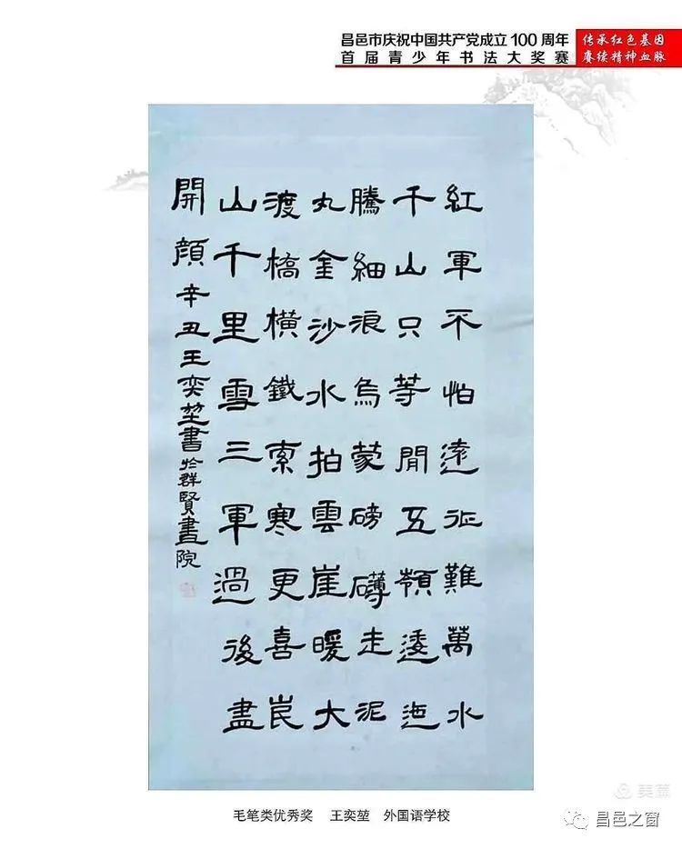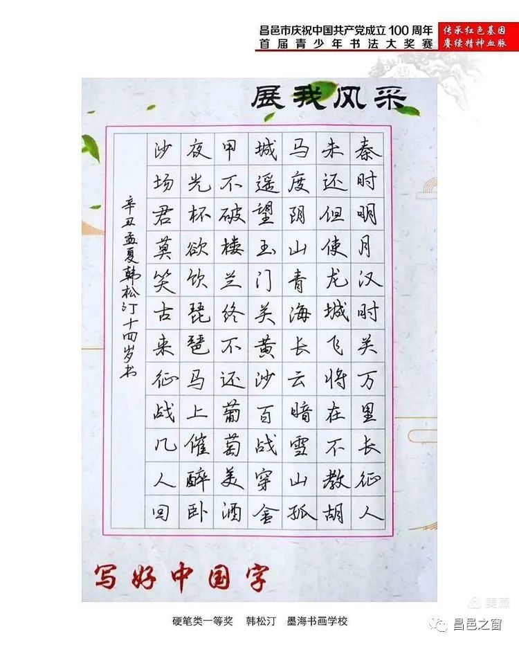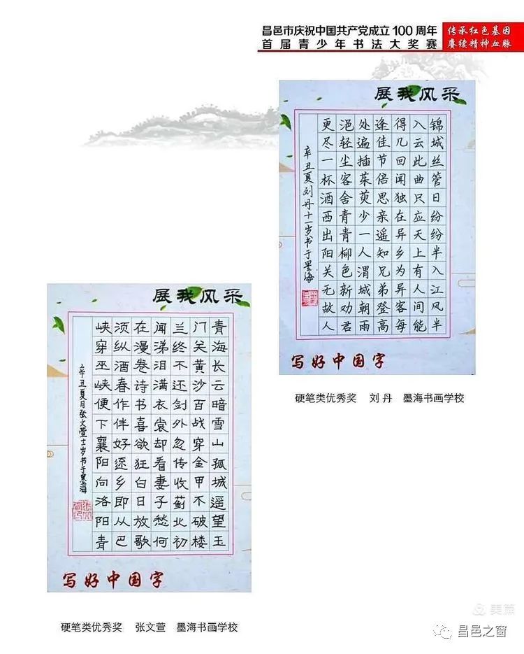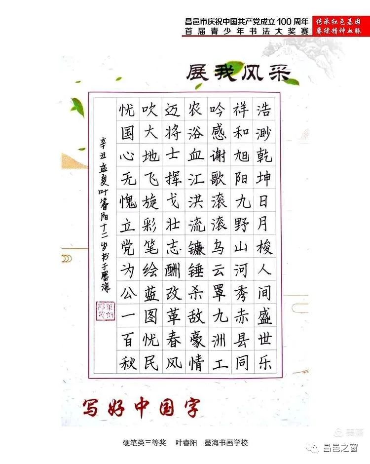 首页 新闻动态 艺术昌邑 | 昌邑市首届青少年书法大奖赛获奖作品网络展 艺术昌邑 | 昌邑市首届青少年书法大奖赛获奖作品网络展 昌邑之窗 发布于 2021年11月29日 评论(0) 阅读(342) 供稿:昌邑市书法家协会