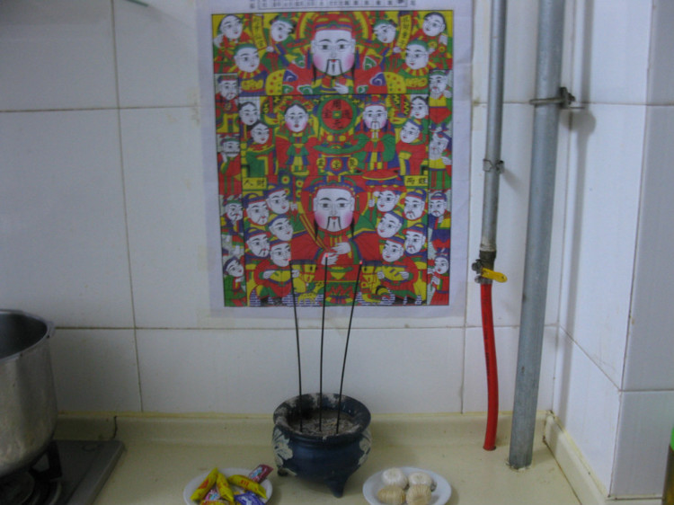 每到腊月的十二日后,集市上就有卖年货的了,家中的主人就要到集市上去请一张灶王像,像中夹有神马小像一张。灶王像的上方是下一年的天干地支塔配图,有月份,节令,几人几饼,几人几锄,几龙治水等。下方画有灶王爷与两位灶王奶奶的神像。再称上麦芽糖造制的糖瓜二两,以作供奉。