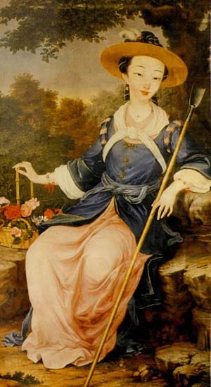 你的美丽容颜在乾隆四十七年的时候,为了祭祀的需要,皇帝让门应兆为您画了写真像,看你刚刚踏过塔克拉玛干沙漠与汉王朱高煦成亲后,就跟随他的部队转战南北,你在云南组建了女子军队,编排到男性队伍的虎队,熊队当中,而称猫队,发挥女人能歌善舞的特长,我想您组建的制作桂花、茉莉花的女子队伍,定是称花队吧,要不您怎会被称为香娘娘。您的戎装像真是英姿飒爽,您采花时的劳动画像,头戴遮阳帽,手提花篮,手握铲座在大山边的石头上,您融入了大自然的花香之美。您的正襟危坐的汉装像,那就是出入宫禁的服装吧,您的孩子们对这身服装定是非常熟悉了。乾隆帝每天都为您上香祈祷,以致被人们把你误传为容妃。容妃哪有你在彩云之南那个地方的功劳。你教人们制香、用香,您熟悉各伊斯兰国习俗,打造下西洋适合于他们国的物品,为国家换来了和平安宁。