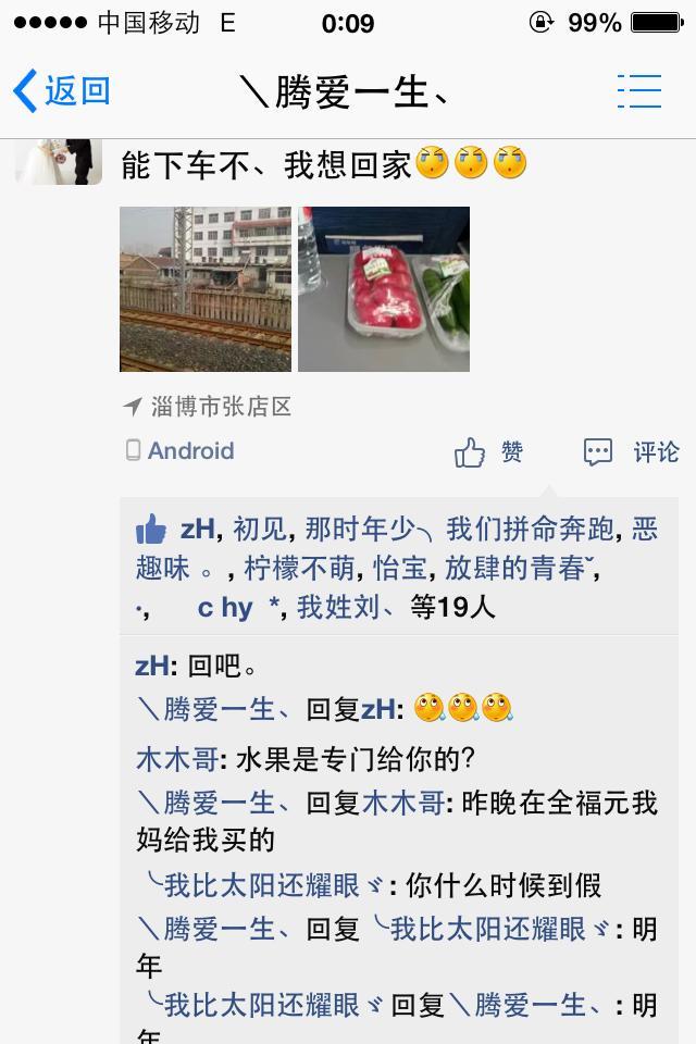 今天一个当兵的朋友在空间发了一个动态,图片是返程动车外的一段风景,还有小餐桌上的几包老母亲给早买好的水果,配以“能下车不?我想回家”的文字——一下子就触动了很多人内心深处最柔软的东西,大家纷纷留言安慰着,我默默留下“表示理解”的字样,也不知道应该再说些什么。人们常说“好男儿志在四方”,也常说“父母在,不远游”,相比之下,我更信奉后者。把一年用五一,十一,春节几个坐标分开,365个日子瞬间就过去了——我们还能见父母几面?是不是看见他们比上一次又老了?