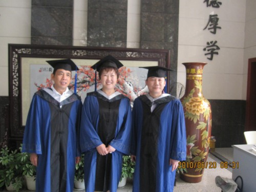 罗开凤姐姐在毕业典礼上与华中科技大学商学院院长(右)在一起