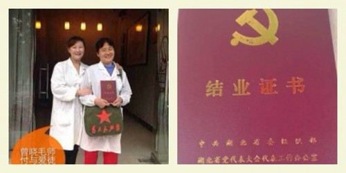 曾晓毛师傅参加湖北省省党代会归来与徒弟罗开玲合影