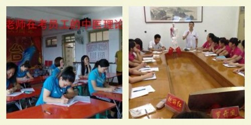 记得有一天我和姐姐下了楼准备出门,路过会议室的时候,发现几个女员工正坐在桌前埋头往纸上写,有的抬起头咬着笔思考,中医培训师张伟老师来回在走动着巡视,整个场面鸦雀无声。作为教师的我,对这种场景再熟悉不过了,心想:“这是在干嘛,怎么像考试一样?”也没管身边的姐姐,掏出相机,径直闯了进去。张伟老师看见了我,笑了笑,低声说:“在业务理论考试。”我围着考场转了一圈儿,看了看试题,是有关足疗养生按摩等中医理论的内容,题型多样化,有填空、选择、问答等,非常正规。我悄悄地退出,问姐姐:“公司经常举行这样的考试吗?”姐姐说:“定期举行,已经列入了常规化制度化,员工必须要熟练掌握理论知识,再扎实地运用到实践中去,这也是考核的一项内容,来不得半点马虎……”