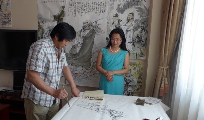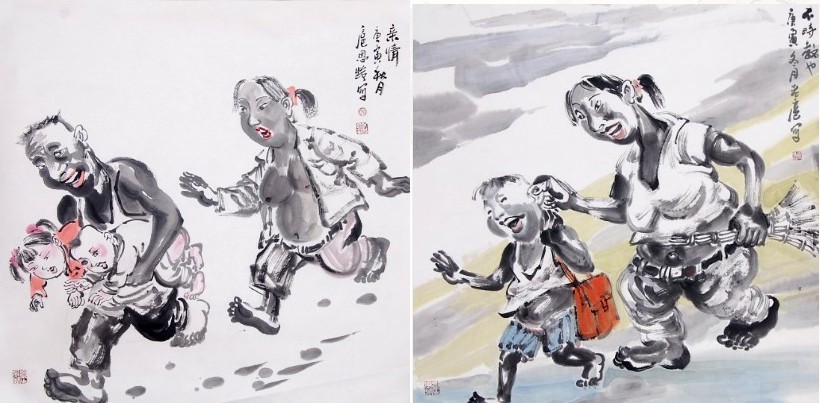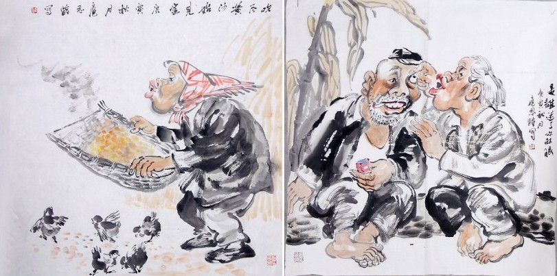 癸巳端午,中国幽默乡土风情画派创始人扈恩龄先生两年来第三次莅临格玉轩。我每次看他的作品都有不同的感悟,他的画作里处处体现出“大雅大俗,大俗大雅,大雅即大俗,大俗即大雅”的高深境界。扈恩龄先生虽内向不善言谈,但他善于用幽默诙谐、夸张变形的画笔描绘草根百姓的生活和喜怒哀乐,一颦一笑,一跋一诗,都有无限隽永的意味,让人莞尔一笑之余,又有深深的思考。这是一个画家内心深处对底层民众最深的人文关怀和热爱。他画的是我们生活中曾经存在,曾经经历,但已经在慢慢远离,甚至是慢慢消失的东西和场景。他画得是我们百姓生活的历史,而那些历史是我们共同的记忆。