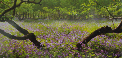 它发于早春,非属兰科,无意与梅兰竹菊“四君子”争宠,虽以草根阶层的白丁姿态立身乡野清风,但却与鸿儒阶层有其文化渊源:学名诸葛菜,别称二月兰。如今扎根昌邑,喻做潍水花。