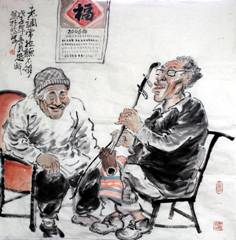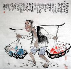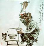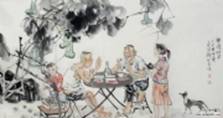 先生画作注重文化内涵,凸显挖掘中国传统绘画的精髓为基调,倡领新奇脱俗的独特风格,使深厚的传统绘画功力,与现代审美意识完美融合,赋予画作以灵性。民族文化是构成人类文明的核心价值,乡土风情跃动着民族脉象,一幅幅栩栩如生的人物风情截图,由小象见大象,或工笔,或写意,或泼洒,着力刻画又不带斧凿痕迹,浑然天成,曲中见直,笑中思奥。