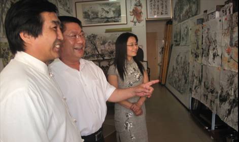 左起:扈恩龄、市政协副主席张天辉、市美协主席徐中立、本文作者。