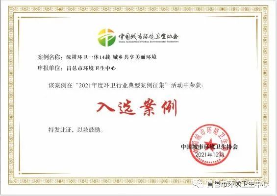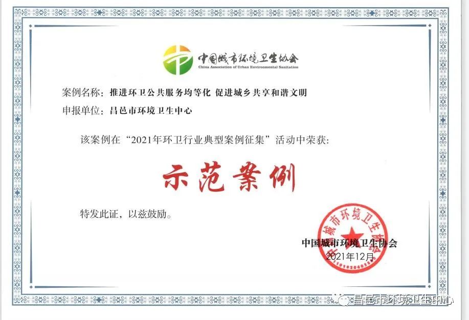 近日,中国城市环境卫生协会公布2021年度环卫行业典型案例名单,我市环卫中心提报的《山东昌邑:推进环卫公共服务 促进城乡共享和谐文明》获2021年度环卫行业示范案例、《昌邑:深耕环卫一体14载 城乡共享美丽环境》《昌邑市城乡环卫一体化的实施与发展》获2021年度环卫行业入选案例。