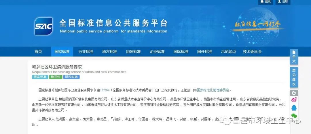 近日,国家市场监督管理总局、国家标准化管理委员会联合发布350项中华人民共和国国家标准公告,由碧桂园满国环境科技集团有限公司、山东省质量技术审查评价中心有限公司、昌邑市环境卫生中心、昌邑市市场监督管理局等11个单位共同起草的《城乡社区环卫清洁服务要求》名列其中,并于2022年4月1日正式实施。
