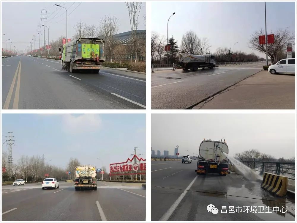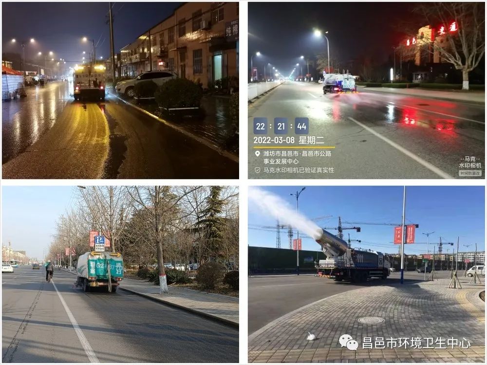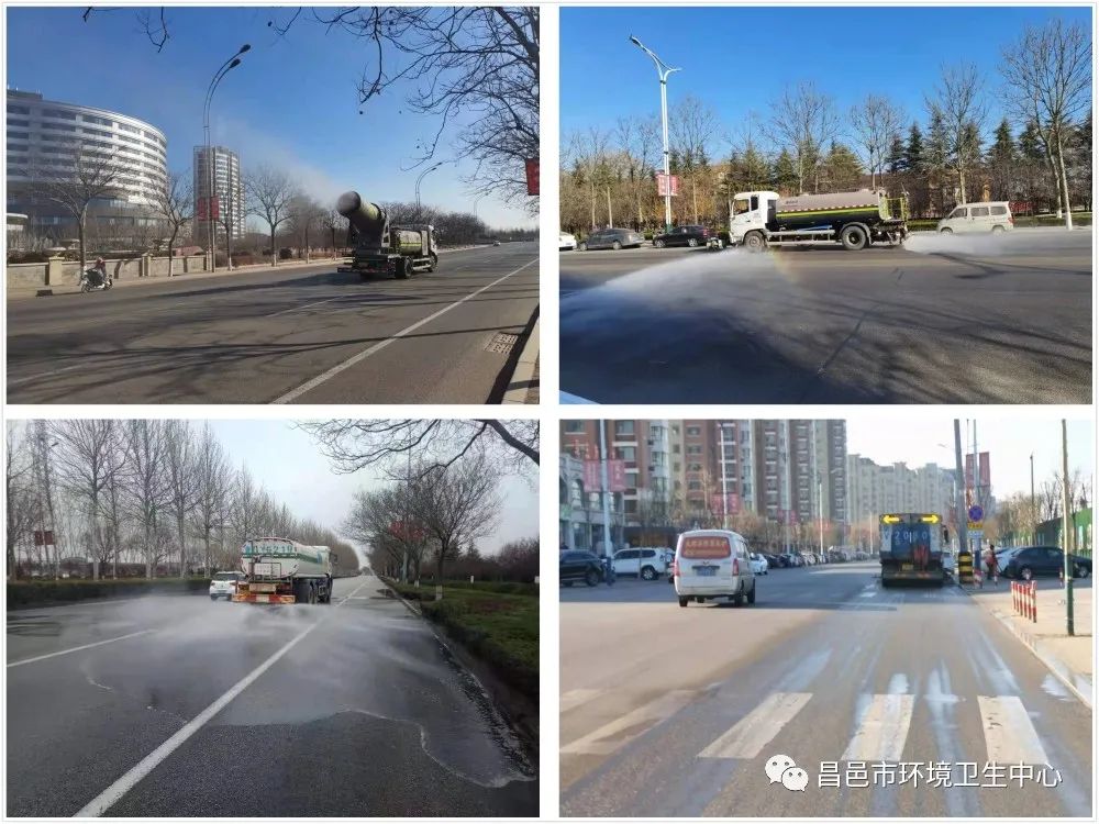 调整作业频次,加大湿扫力度。新增4台大型湿扫车、6辆洒(冲)水、2台雾炮车,重点对昌邑一中、公路局等8个重点区域及周边38条道路进行深度保洁作业,由原先一日5洒5扫1冲调整为一日6洒6 扫1冲,每日间隔2-3小时湿扫1次、1-2小时洒水、炮雾1次,确保主要区域道路路面干净、湿润、整洁,车辆通行无扬尘。