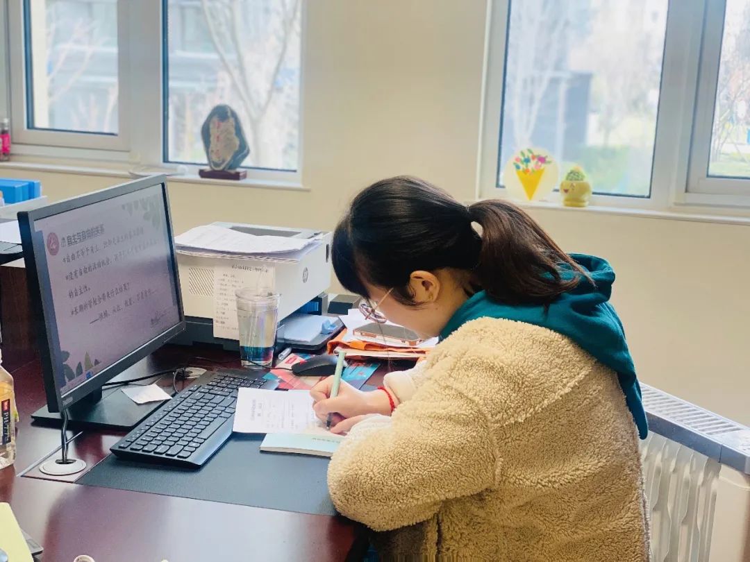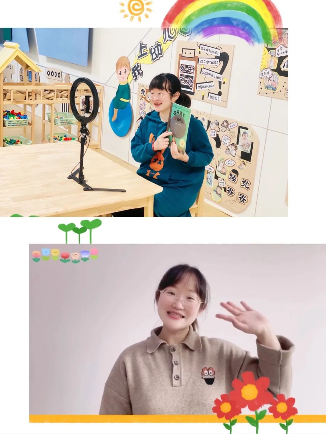 班里三十名孩子的居家生活健康是姜老师心底最牵挂的,她操心着孩子们居家作息是否规律?是否健康饮食?居家防疫方法是否正确?她把班里的每一个孩子都当成自己的孩子,每周和孩子的两次线上见面时间她都细心嘱托每个孩子、每位家长,将自己熟知的防疫知识分享给每一组家庭,并为他们排忧解难,她用爱点亮星灯,用心传递温暖。