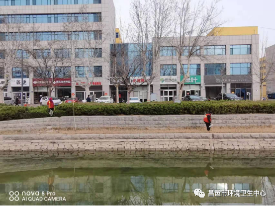 “两岸捡”作业:督导保洁员巡回捡拾东岸小草坪及绿化带周边漂浮物垃圾,清理西岸树池烟头、狗屎等垃圾。