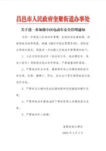 昌邑市人民政府奎聚街道办事处关于进一步加强小区电动车安全管理通知