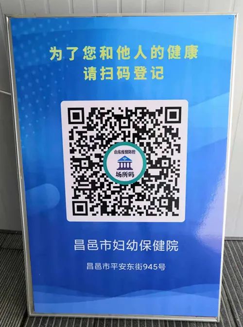 为加强疫情溯源和监测,更好保障广大人民群众的生命安全,保护个人信息,自2022年4月3日起,昌邑市妇幼保健院根据上级要求,在医院推广应用统一的山东疫情防控“场所码”。“场所码”是“山东健康码”系统为重点场所生成的专有二维码,标识了场所位置、场所名称等信息,可实现出入场所人员信息的自动化登记和健康信息的核验。