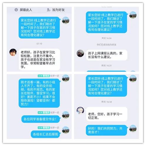 线上教学开始后,迟老师首先建立班级群,科学划分学习小组,在自习、做作业、讨论等环节各小组必须开视频(各组长组织)、穿校服等,并且要求摄像头对准学习材料,实时巡查,对有问题的及时提醒整改。每一节课他都精心准备,提前做好教学课件,需要用到的试卷、材料、自录视频等都会提前发到学习群里。他坚持每节课必点名,并采用随时提问、实时提交书写的答案等方式监督学生上课情况,避免了学生显示在线但人不在课堂的现象,保证了学生课堂效率。
