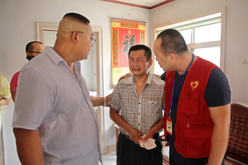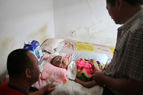 今年42岁的围子四甲村妇女马素华,2013年10月遭遇车祸,治疗花费20余万元仍不见好转,经法医鉴定为一级伤残植物人。咽喉切开插管呼吸,鼻腔打流食,常年用尿布,体重从148斤减到现在的不足50斤。为了治疗,家中借遍了所有亲朋,外债高筑。家中还有两个读小学的10岁双胞胎女儿,丈夫马会江对妻子日夜照顾、不离不弃,目前仅靠2亩地维持生计。义工和各界爱心人士为她送去了慰问品,并现场给她捐款。临行前,义工们叮嘱她的丈夫要勇敢坚强的面对今后的生活。