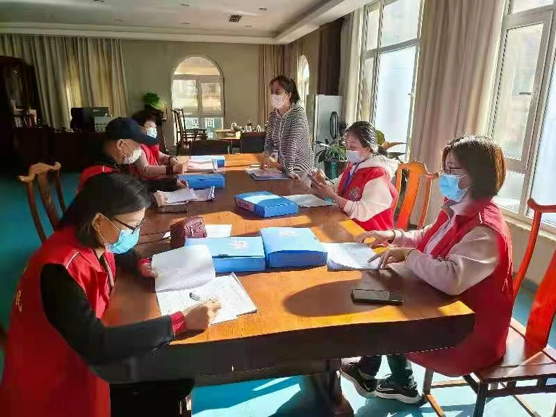 奎聚街道府前社区的网格员们在对社区的17个网格开展入户走访信息采集工作