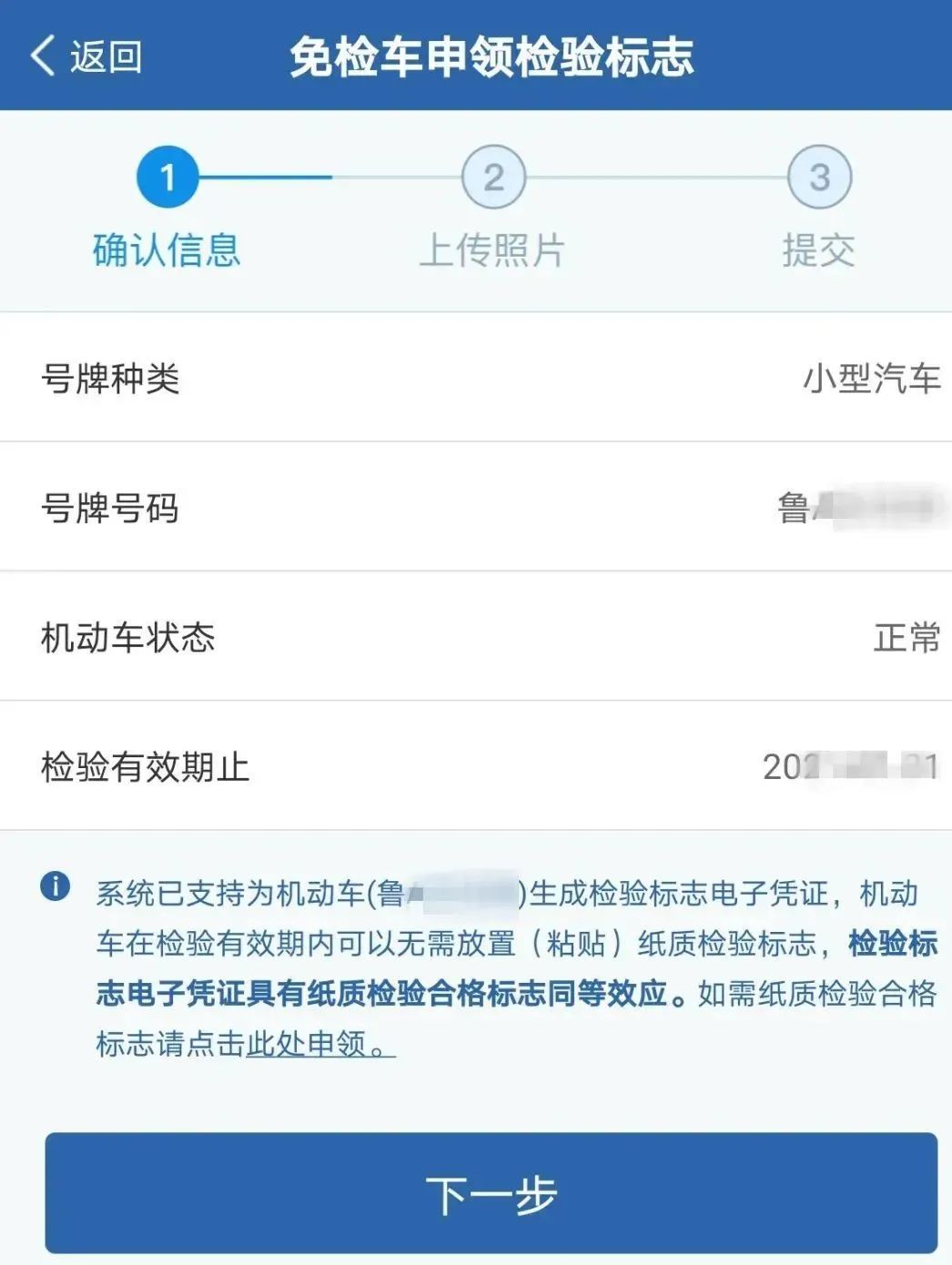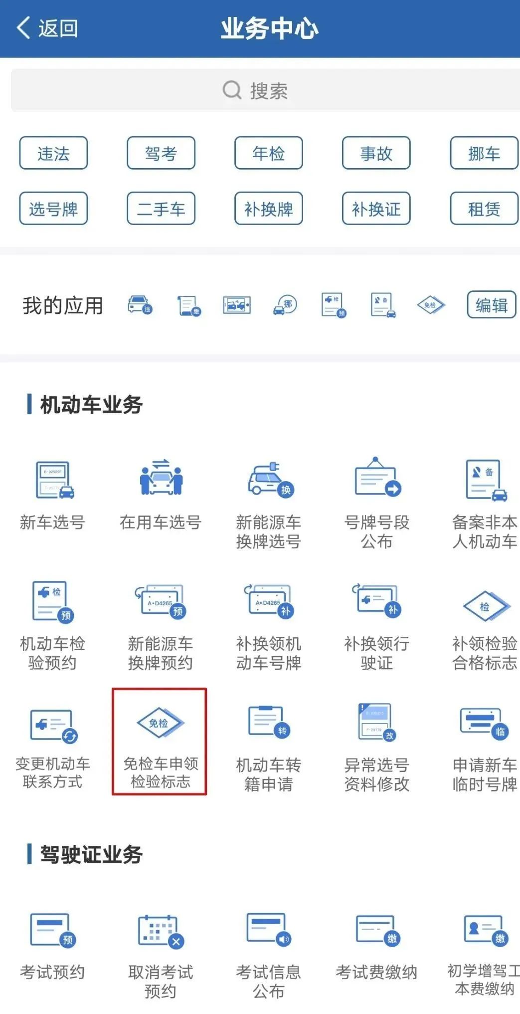 1、打开“交管12123”手机app,选择“免检车申领检验标志”,按照提示进行操作。这样,你就可以获得一个与纸质检验标志同等效力的“检验标志电子凭证”啦,比去车管所更方便,更快捷。