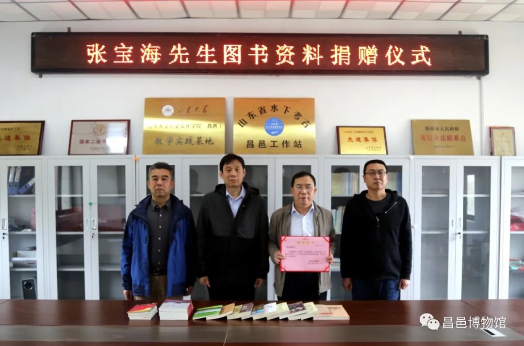 4月13日上午,张宝海先生向昌邑市博物馆资料室捐赠个人文学著作《且听蝉鸣》《村里存外》《大地求索》《大清神鼎》《生命密道》以及相关资料共27册。