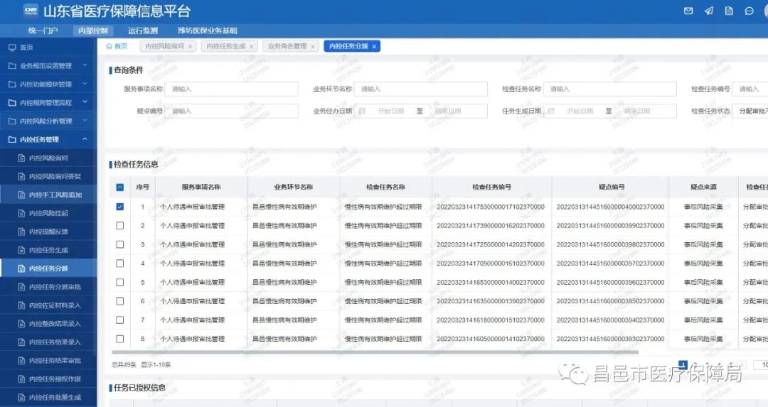 作为医保基金监管集中宣传月活动“十个一”其中的一项内容,按照上线一套内控系统的要求,目前,昌邑市医保内控子系统开始上线试运行。