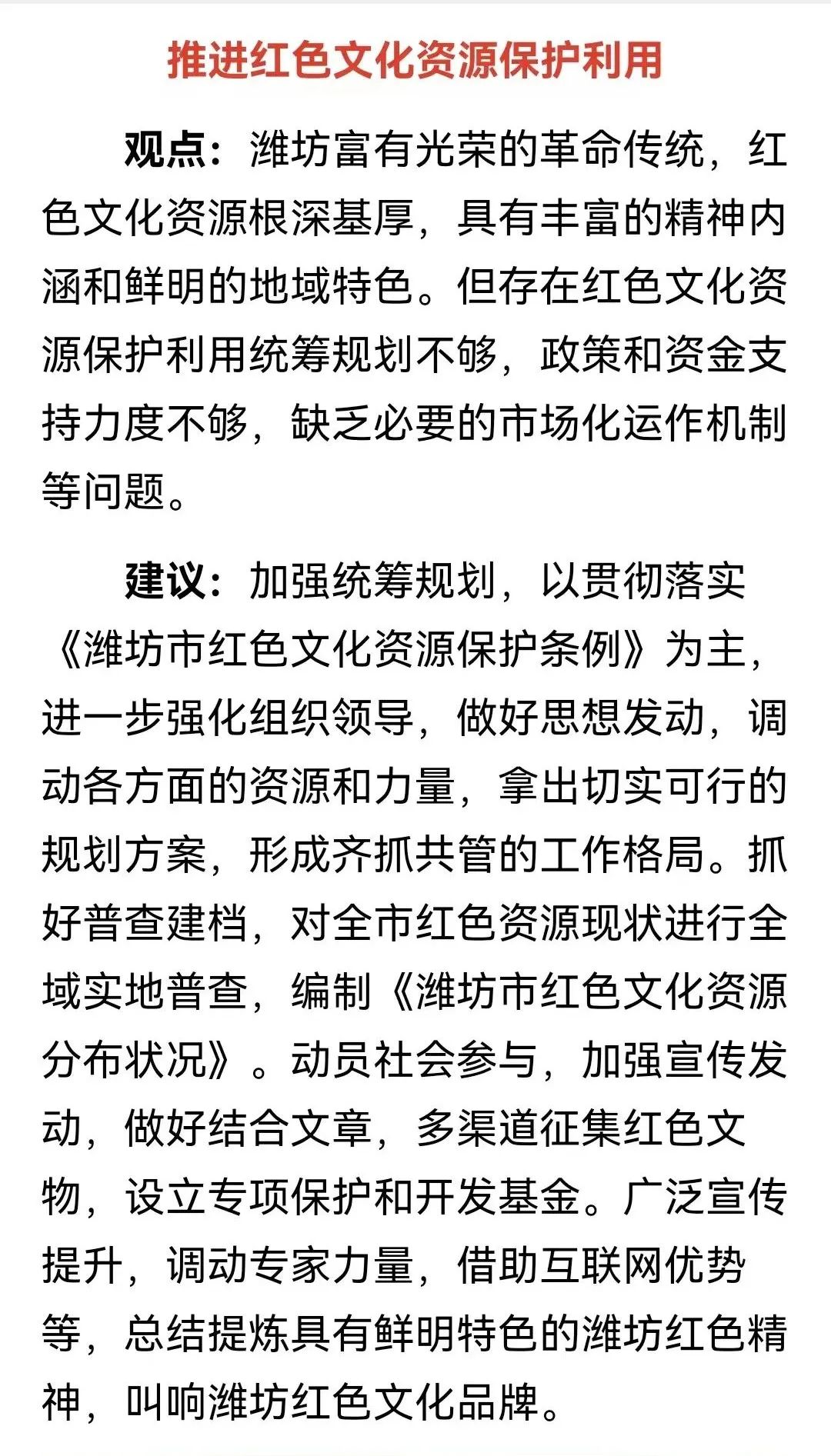 “十四五”时期,潍坊市把创建“东亚文化之都”作为加快建设人民满意的现代化品质城市的新目标、新举措,孙晓东委员围绕“推进红色文化资源保护利用”课题,提出了“昌邑方案”。