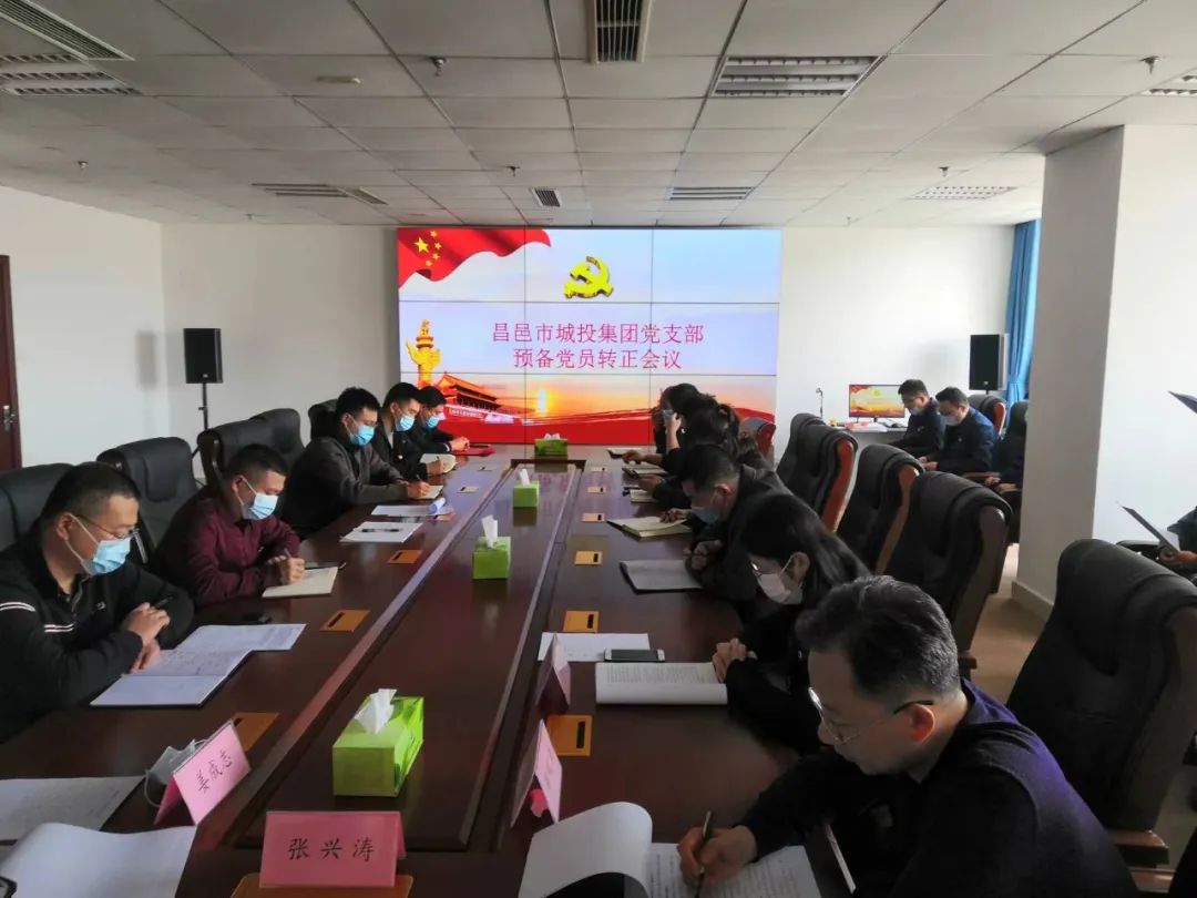 2022年4月13日下午,市城投集团党支部召开预备党员转正会议,集团公司党支部书记姜成志同志主持会议,市国企工委副书记张兴涛,组织员李晓峰同志列席指导工作。