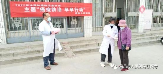 4月18日,昌邑市人民医院组织党员到新村社区开展“双报到”暨全国肿瘤防治宣传周宣传活动。
