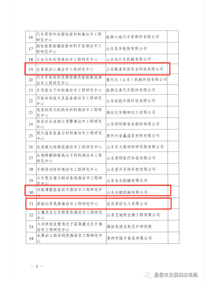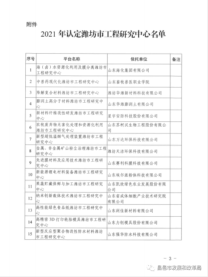 近日,潍坊市发改委公布了2021年潍坊市级工程研究中心名单,全潍坊市共认定34家工程研究中心,其中我市获批3家,获批数量居潍坊市前列。