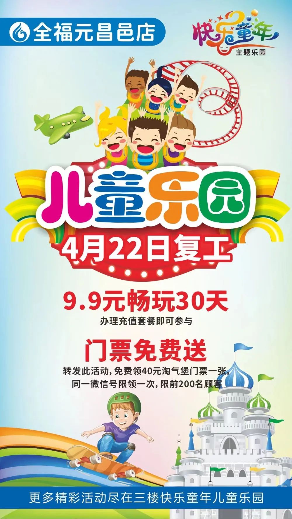 首页 企业动态 昌邑全福元城市综合体影院、电玩、乐园全面复工 昌邑全福元城市综合体影院、电玩、乐园全面复工 昌邑之窗 发布于 2022年4月23日 评论(0) 阅读(425) 全福元昌邑店 ·儿童娱乐· ·成人电玩· ·巨幕影院· 期.待.您.的.到.来 我们恢复营业啦 我们已做好消毒,期待您的回归