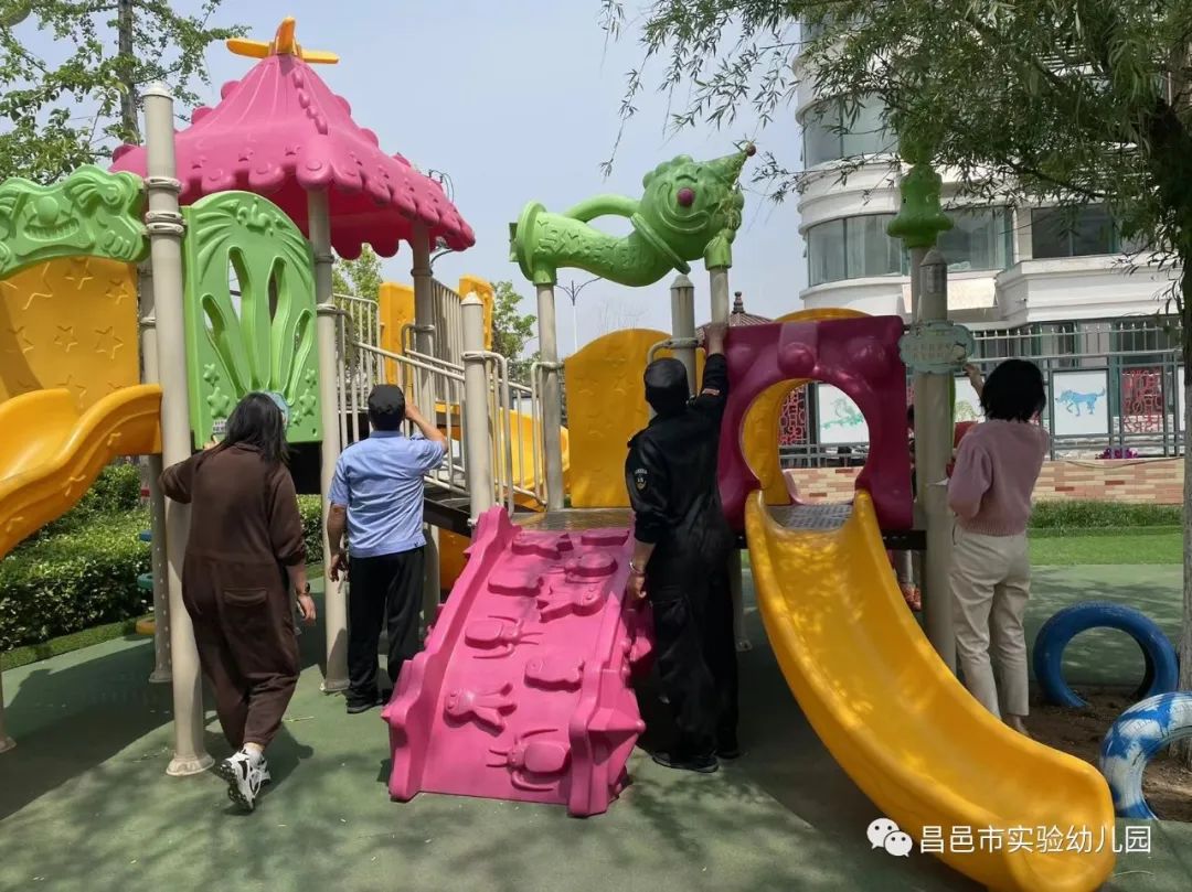 安全领导小组重点对园所及周边环境、户外大型玩具、教室、消防、食堂等进行安全细致检查,针对发现的个别问题,及时消除安全隐患。