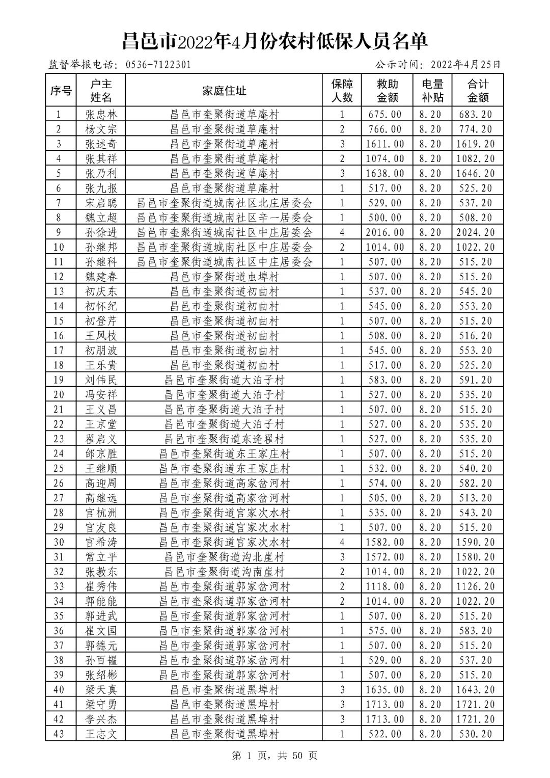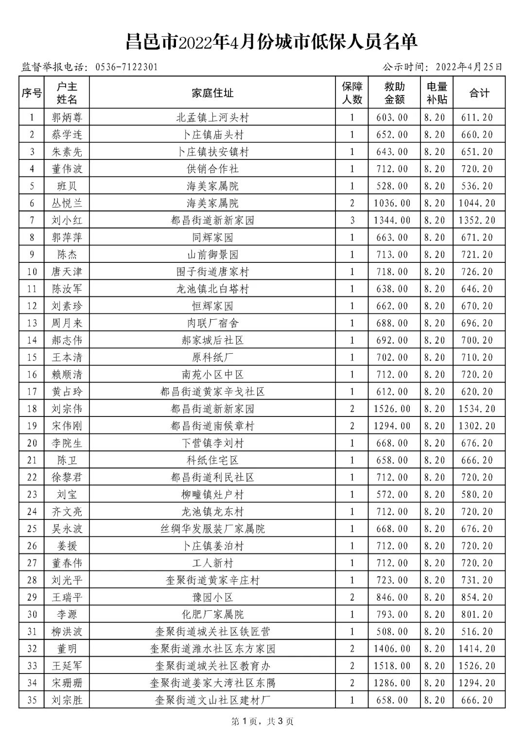 首页 行政动态 昌邑市2022年4月农村和城市低保人员公示 昌邑市2022年4月农村和城市低保人员公示 昌邑之窗 发布于 2022年4月26日 评论(0) 阅读(291) 现将我市2022年4月享受城市和农村低保人员名单及救助金发放情况进行公示,欢迎广大群众进行监督。 受理单位:昌邑市民政局社会救助和养老服务科 监督电话:0536-7122301