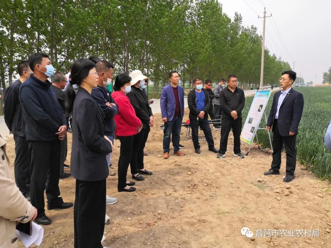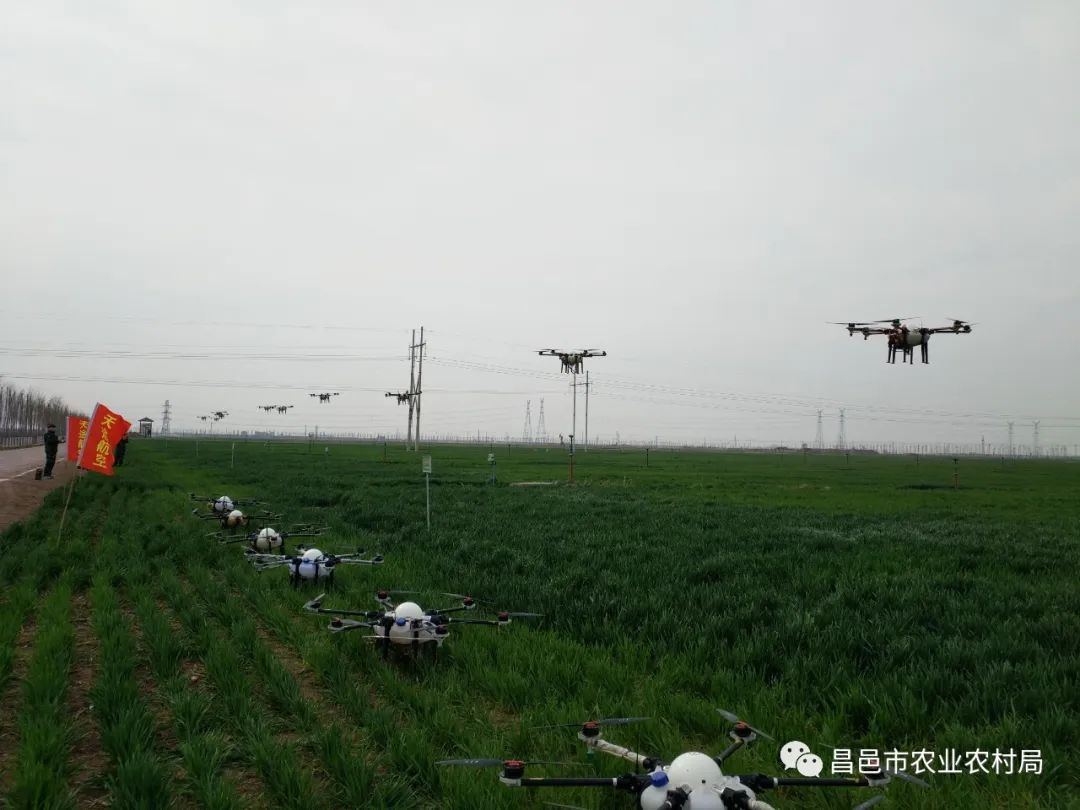 郑以宏研究员现场讲解了小麦中后期高产管理技术,强调了一喷三防对小麦增产稳产的重要性。小麦“一喷三防”是在小麦穗期一次性喷施杀虫剂、杀菌剂、植物生长调节剂或叶面肥,达到防病、防虫、防干热风效果的小麦中后期关键防灾增产技术。市农业农村局宫瑞杰同志就当前小麦条锈病在我省的发生形式及条锈病防治小知识(症状特点、发病规律、防治方法)作了详细介绍。20架植保无人机进行了飞防作业。