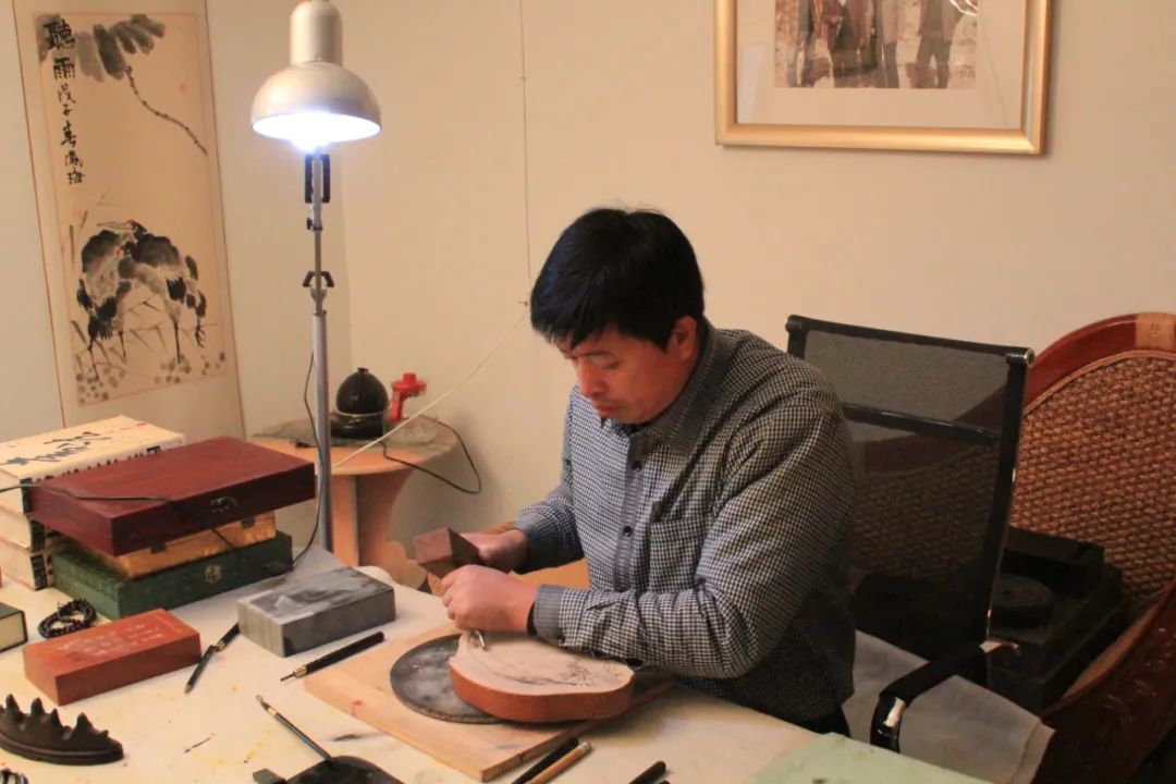 刘克唐入室弟子孙风海潜心传承师傅技艺,从事砚雕、石雕二十余年,他继承家族五代相传的石雕、砚雕技艺,潜心研读高凤翰的《砚史》和石可的《鲁砚》,在实践中继承发扬了鲁派砚台制作技艺“因材施艺、天人合一,简朴大方、虚实相宜,大巧若拙、以文导题”的传统制作理念。于2014年建立了技艺传习所、2019年建立了砚文化博物馆,在保护传承及推动项目发展方面做出突出贡献。