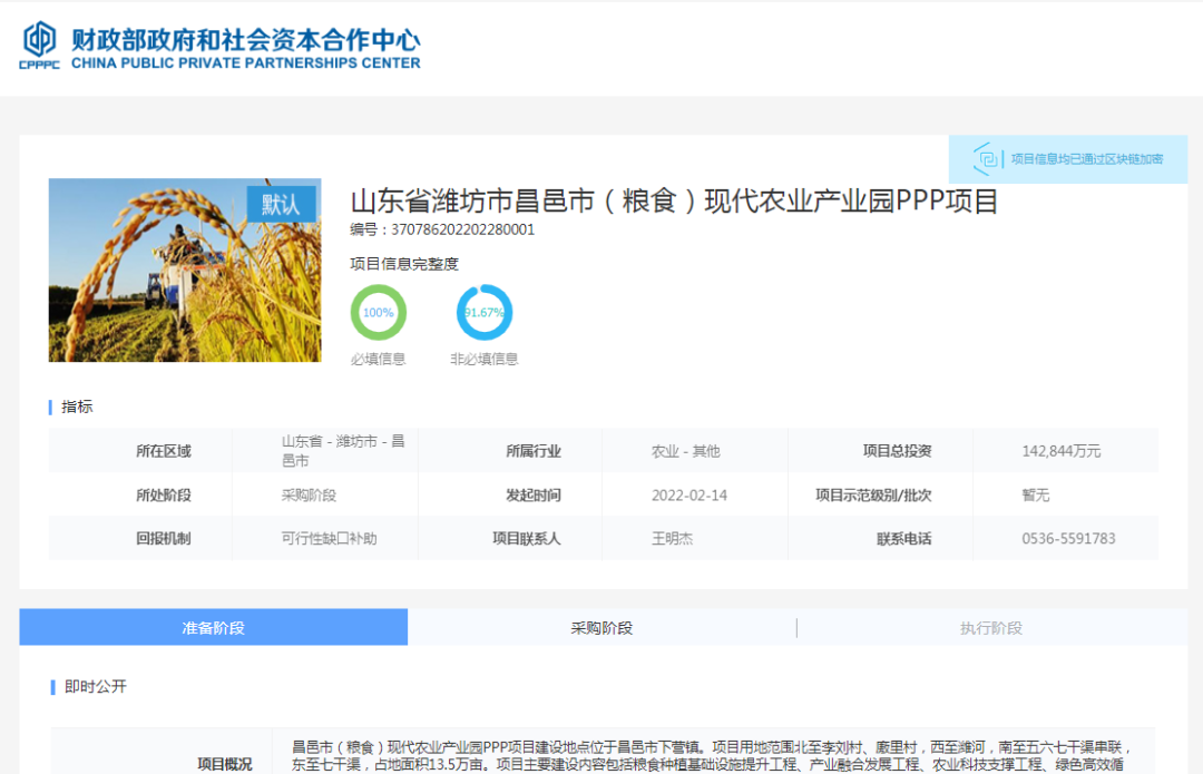 本项目建设地点位于昌邑市下营、卜庄两镇。项目用地范围北至李刘村、廒里村,西至潍河,南至五六七干渠串联,东至七干渠,占地面积13.5万亩。项目主要建设内容包括粮食种植基础设施提升工程、产业融合发展工程、农业科技支撑工程、绿色高效循环农业工程、品牌营销质量兴农工程、联农带农工程六部分。项目总投资估算142844万元。项目采用BOO的运作模式,合作期设定为28年,采用“政府可行性缺口补助”的回报机制。