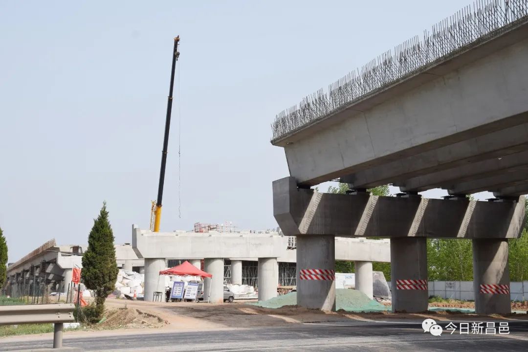 在施工过程中,由于昌平特大桥建设紧邻高铁并跨越221省道进行施工,来往车辆多,具有技术难度大、管控风险高、施工工期紧、交叉作业多的特点,是整个项目施工的重点、难点。为保证桥下通行高度,市交通运输局积极协调组织涉路方案专家评审,不断完善交通导改方案,设计左右线各采用2—32m现浇槽型梁,有效保障了该工程的顺利开展。
