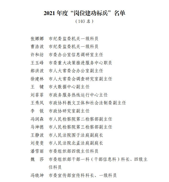 为激励市直机关党员干部职工立足岗位作奉献、勇于担当比作为,争当“五型干部”,聚力推动市委“五强五高”发展目标和作风建设“三实三高”落实落地,近日,昌邑市委市直机关工委组织开展“岗位建功标兵”评选活动。