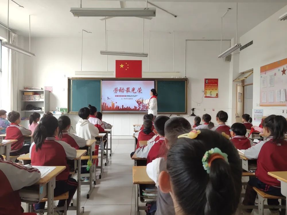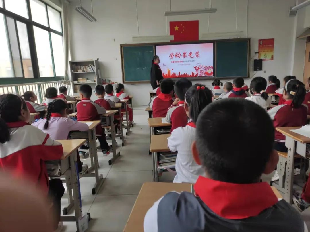 在各中队辅导员的带领下,少先队员们通过观看“五一”劳动节的有关资料、图片、视频和介绍身边感人的劳动故事共同了解了“五一”国际劳动节的由来,从小培养爱劳动的好习惯,增强劳动观念,养成珍惜劳动成果的行为习惯。